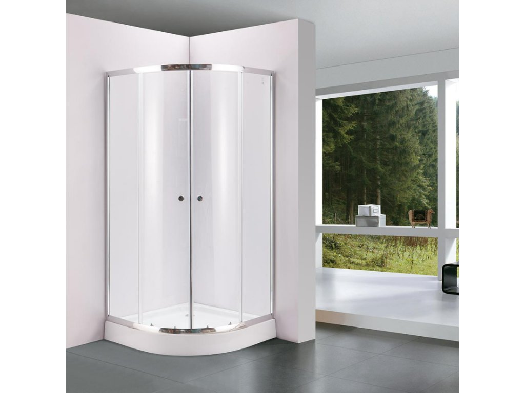 Elegantný štvrťkruhový sprchový kút 100 × 100 × 195 cm s grafitovým bezpečnostným sklom (4 mm) a dvojitými posuvnými dverami na pohodlný vstup. Stabilné hliníkové profily v chrómovej farbe dodávajú moderný vzhľad. Súčasťou je akrylátová vanička (výška 15 cm) s protišmykovým dnom a vzdialenosťou od odpadu 7 cm na jednoduché pripojenie.