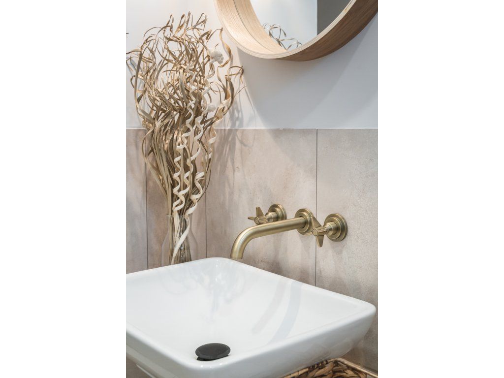 Podomietková umývadlová batéria Temisto v luxusnom mosadznom odtieni je dokonalým príkladom toho, ako bude moderný retro štýl pôsobiť v kúpeľniach zariadených v klasickom aj minimalistickom štýle. Výrazné štylizované gombíky kolekcie, ktoré pripomínajú vrtule lietadiel, sa nádherne kombinujú so zaobleným valcovým výtokom. Batéria je vybavená hlavicou otočnou o 90°, ktorá umožňuje rýchle nastavenie zvolenej teploty vody, a pohyblivým perlátorom, ktorý prevzdušňuje prúd vody a umožňuje jeho smerovanie zvoleným smerom. Obe riešenia sú v súlade s ekologickou filozofiou značky, ktorá sa zameriava na technológie znižujúce spotrebu vody. Podomietková umývadlová batéria na obrázku má luxusnú mosadznú povrchovú úpravu, ktorá nielenže odkazuje na retro štýl kolekcie, ale vďaka inovatívnej technológii povrchovej úpravy je aj mimoriadne odolná. Kolekcia Temisto získala ocenenia ako Must Have 2020, "Kúpeľňa" a ďalšie - Voľba roka 2020 alebo Top dizajn 2020, čo je zárukou najvyššej kvality výrobkov a dokonalého dizajnu.