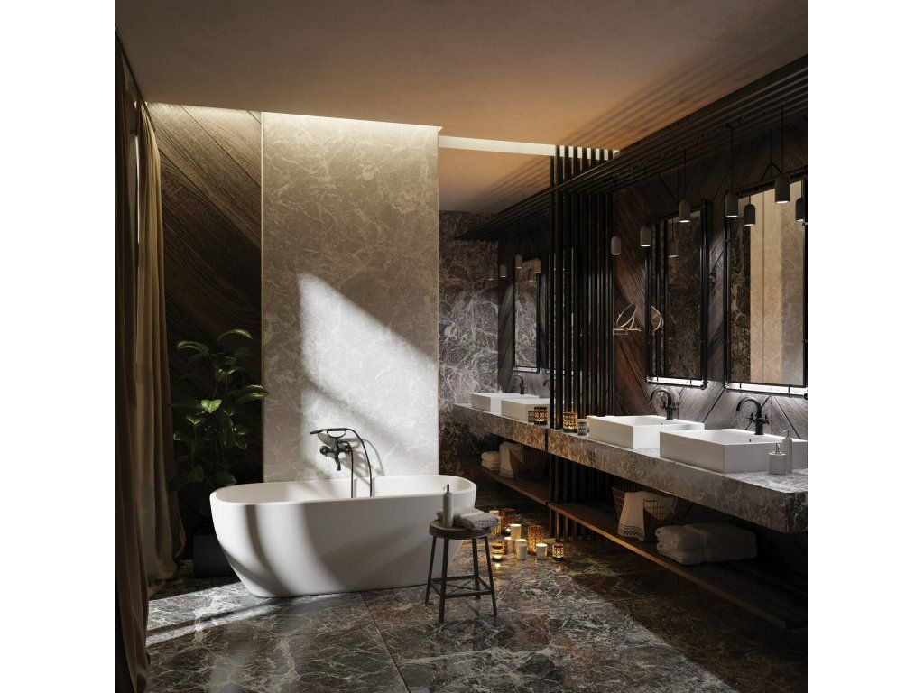 Temisto je moderná batéria s nádychom retro štýlu. Je preto vhodná do moderných aj retro kúpeľní a možno ju dokonale kombinovať s mnohými ďalšími retro doplnkami. Zdobia ju predovšetkým dve otočné páky s retro dekorom na teplú a studenú vodu. "H" je na teplú vodu a "C" na studenú vodu.