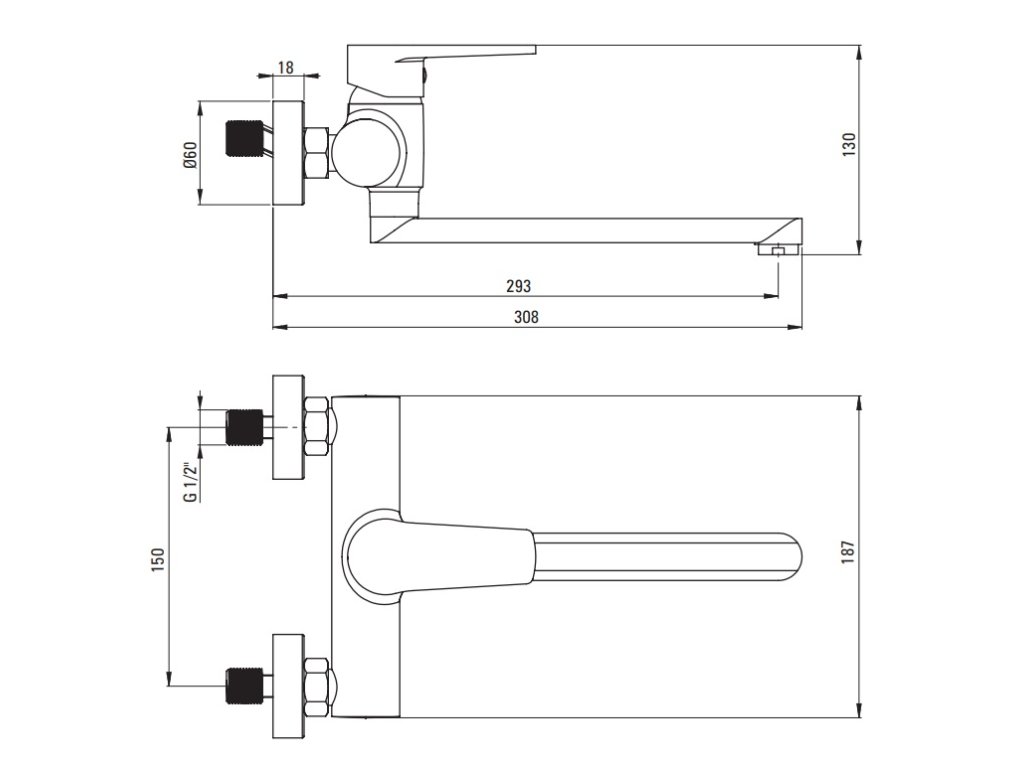 Aplomo Tubo nástenná batéria s dlhým otočným ramenom, BUT_050M