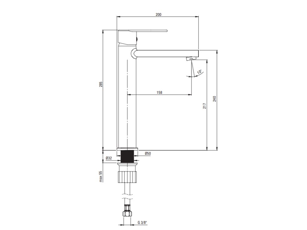 Aplomo Tubo vysoká umývadlová batéria, BUT_020K