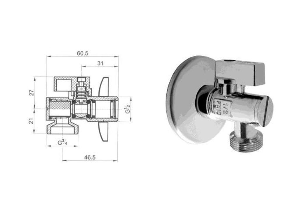 • rohový ventil z kvalitnej pochrómovanej mosadze s kovovou pákou