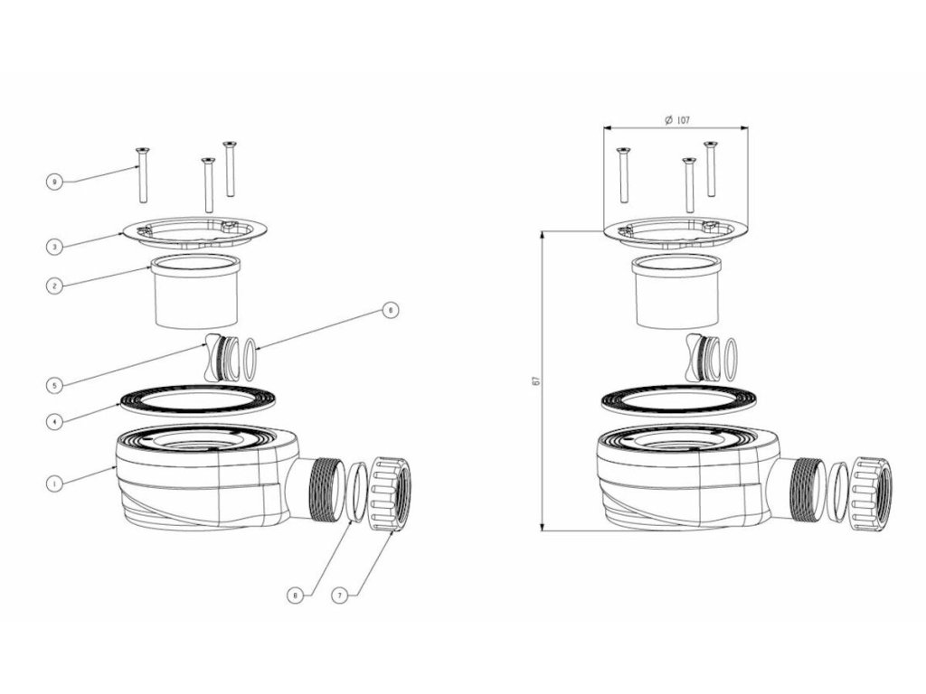 - sprchový sifón s priemerom 90 mm