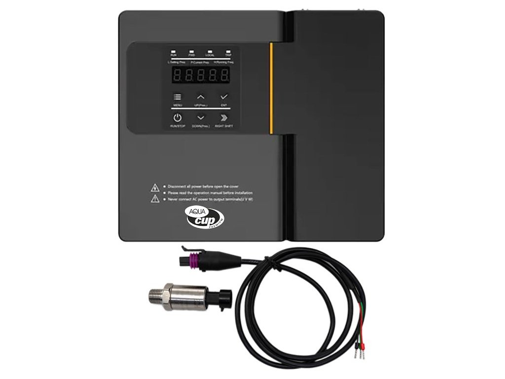 Energeticky úsporné frekvenčné meniče na inteligentné riadenie čerpadiel do 7,5 kW s jednoduchou obsluhou. Meniče zabezpečujú konštantný tlak vo vodovodnom systéme, chránia pred chodom nasucho a poskytujú ochranu proti prehriatiu a preťaženiu trojfázového motora. digitálny displej s LED indikáciou zobrazujúcou aktuálne prevádzkové hodnoty zabudovaný režim PID regulácie - automatické vypnutie čerpadla pri nedostatku vody 5 režimov regulácie, pripojenie až 6 čerpadiel dodávka vrátane snímača tlaku, kabeláže a univerzálnej montážnej konzoly úspora energie až 50 %Dodatočné parametre