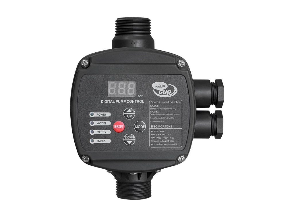 Automaticky riadi prevádzku čerpadla podľa zisteného stavu vodného zdroja, spotreby a zmien tlaku v potrubí. Úplne nahrádza tradičné riadiace systémy využívajúce hydrostat aj bežný tlakový spínač. Ďalšou výhodou je ochrana proti chodu nasucho a vizualizácia tlaku v reálnom čase na digitálnom displeji (viac informácií nájdete na strane 9). - funkcia hydrostatu (MODE1) - zapínací tlak 0,5 - 6 bar- funkcia tlakového spínača (MODE2)- zapínací - vypínací tlak 0,5 - 9,8 bar- ochrana proti chodu nasucho Toto zariadenie možno inštalovať ako čerpadlo s hydrostatom alebo ako vodáreň s tlakovou nádobouDodatočné parametre