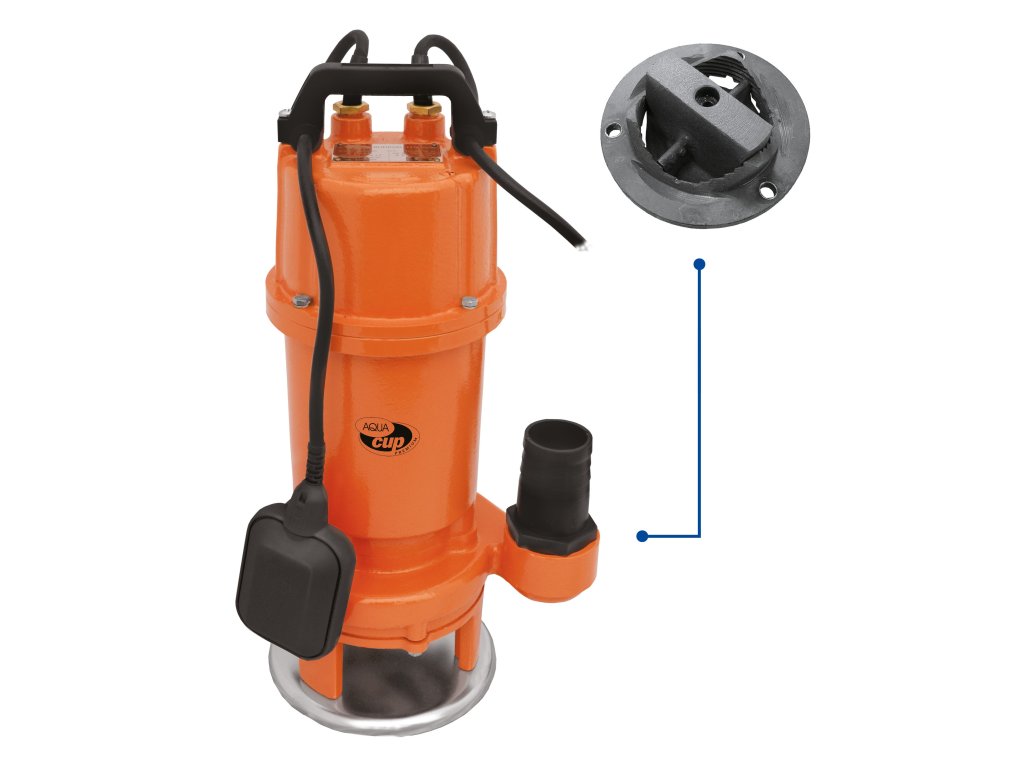 Kalové čerpadlo s obežným kolesom a rezacím nožom na znečistenú vodu s prímesou vlákien - priemyselný a domáci odpad so zvyškami textilných zmesí. Čerpadlo je vo verzii s motorom na 230 V, vybavené 10 m flexiou H07RNF3x1 mm, plavákovým spínačom a tepelnou poistkou vo vinutí motora. Teleso čerpadla je vyrobené zo samočistiacej liatiny GG20, obežné koleso z ocele ZG35, rezný nôž z ocele ZG40Cr, hriadeľ z ocele 9 Cr18 (AISI 440 B), dvojitá mechanická upchávka (C/keramika, SiC/Sic), trieda izolácie motora B, krytie motora IP 68. Konštrukčné charakteristiky teleso čerpadla z liatiny GG20 obežné koleso z ocele ZG 35 rezné koleso a drvič ZG40Cr hriadeľ z nehrdzavejúcej ocele 2Cr13 dvojité mechanické tesnenie v olejovej komore (keramika/karbón, kremík/silikón) pripojenie plavákového spínača 2" - 2 1/4" Konštrukcia motora 230 V motor so suchým chodom jednofázové prevedenie so zabudovaným kondenzátorom stupeň ochrany IP68 trieda izolácie B tepelná ochrana vo vinutí motora otáčky 2800 ot./min. ohybný kábel 10 m HO7RNF 3x1 mm maximálny počet štartov 30/hod. hodnota akustického tlaku 85 dB Použitie typ kvapaliny: kaly a odpadové vody s pevnými časticami a vláknami maximálna teplota kvapaliny 40 °C Použitie priemyselné, domáce použitie čerpanie odpadových vôd a usadenín s textilnými vláknami kvapaliny chemicky kompatibilné s materiálom čerpadlaDodatočné parametre