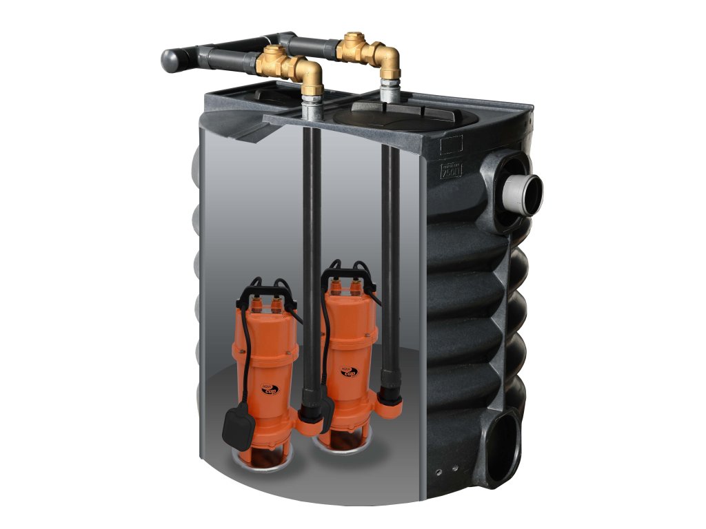 Čerpací box pozostáva z polyetylénovej nádrže s objemom 750 l a dvoch kalových čerpadiel SHREDD, každé s príkonom 1100 W. Polyetylénová nádrž je vybavená plastovým vekom pre ľahký prístup k čerpadlám v prípade kontroly. Kalové čerpadlá SHREDD sú vybavené obežným kolesom z ocele ZG35 a rezným nožom z ocele ZG40Cr. Je určené na čerpanie domových a priemyselných odpadových vôd aj s prímesou vlákien. Na výtlačnom pripojovacom potrubí je nainštalovaná armatúra na rýchlu a jednoduchú údržbu čerpadla. Box má 10 m pripojovací kábel H07 RNF, priemer prívodného potrubia je 110 mm.Dodatočné parametre