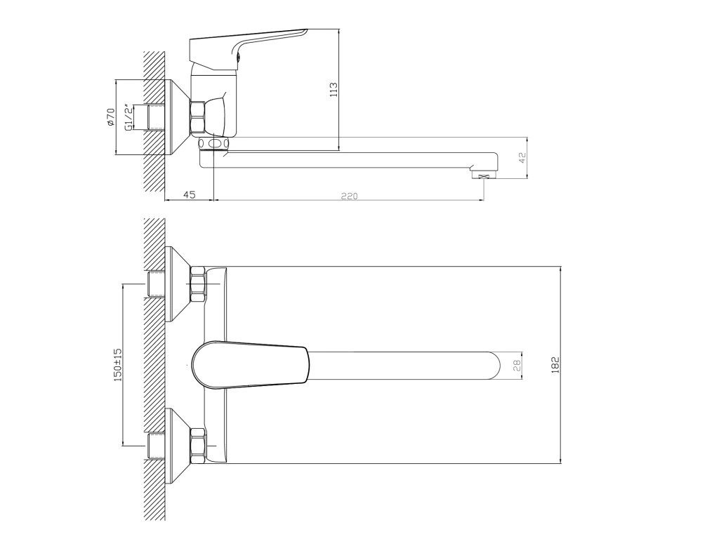 Aqualine LOTTA nástenná batéria, ploché ramienko, čierny mat LT642B