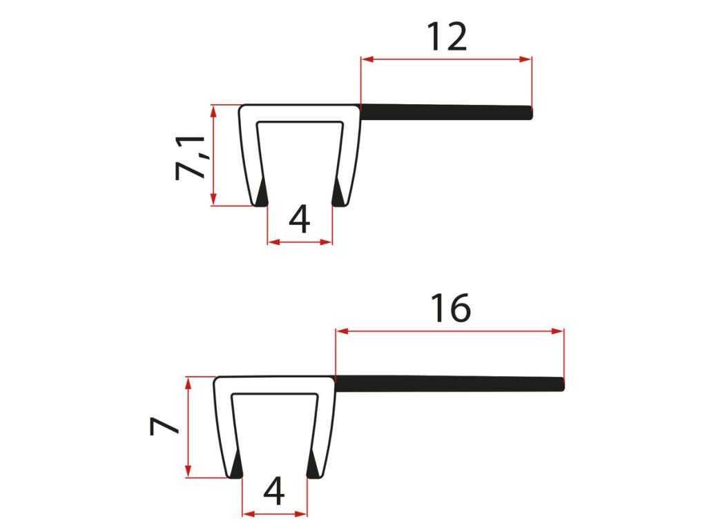 Aqualine Set zvislých tesnení pre 5/5mm sklo, 2000mm SPAT02