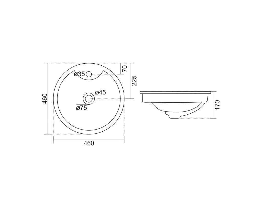 Aqualine SHIPRA keramické umývadlo zápustné, priemer 46cm, biela NP564