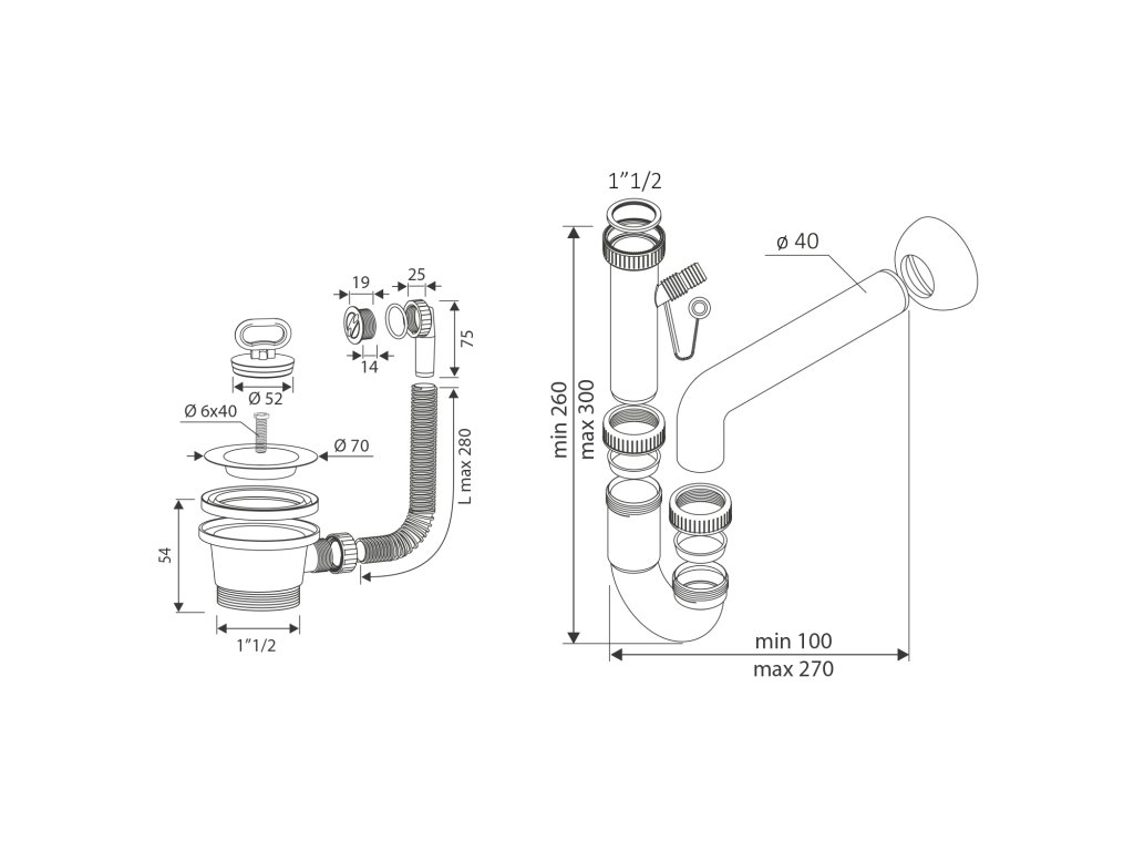 Aqualine Sifón k výlevke PI4550, PI6050 a PI8050 NDPI8050