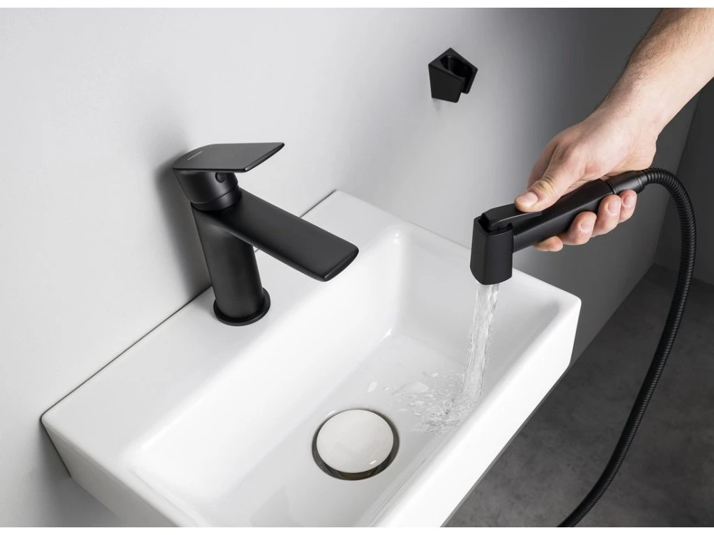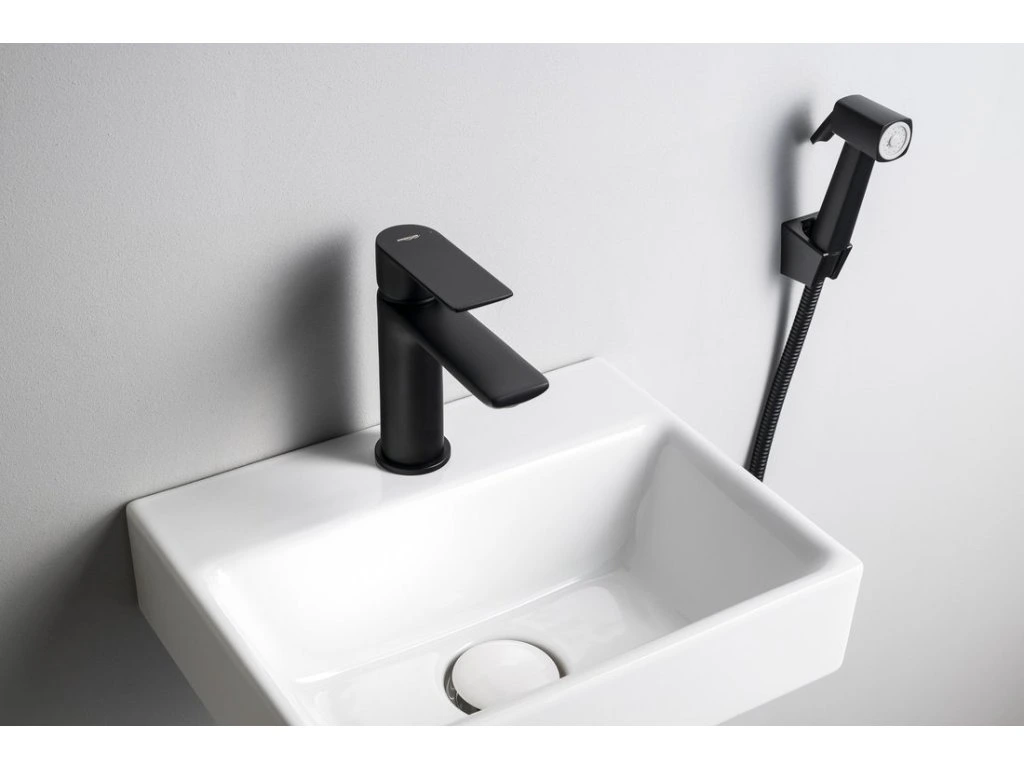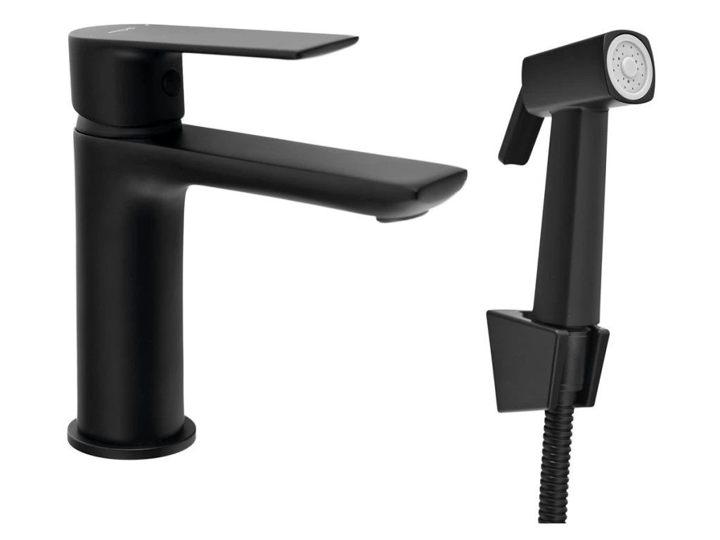 Aqualine Umývadlová stojánkova batéria s bidetovou sprškou, čierna SK401B