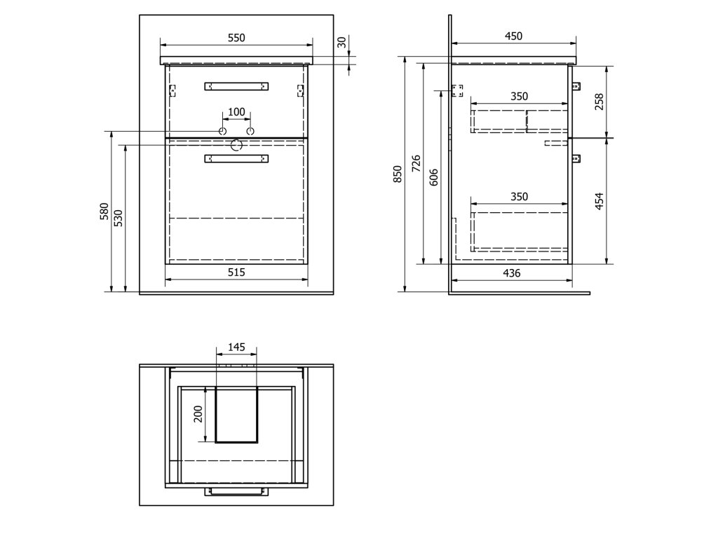 Aqualine VEGA umývadlová skrinka 51,5x72,6x43,6cm, 2x zásuvka, biela VG053