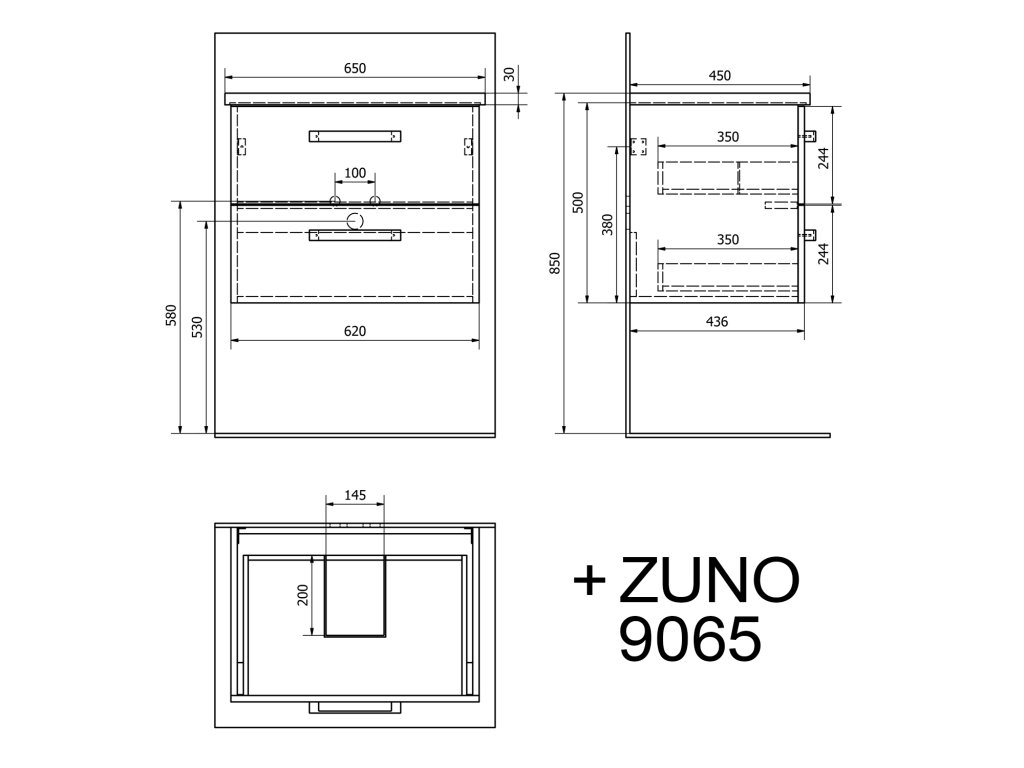 Aqualine VEGA umývadlová skrinka 62x50x43,6cm, 2x zásuvka, biela VG064