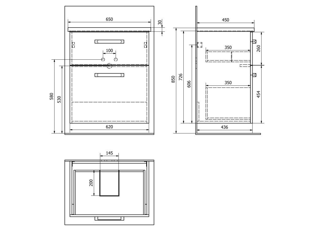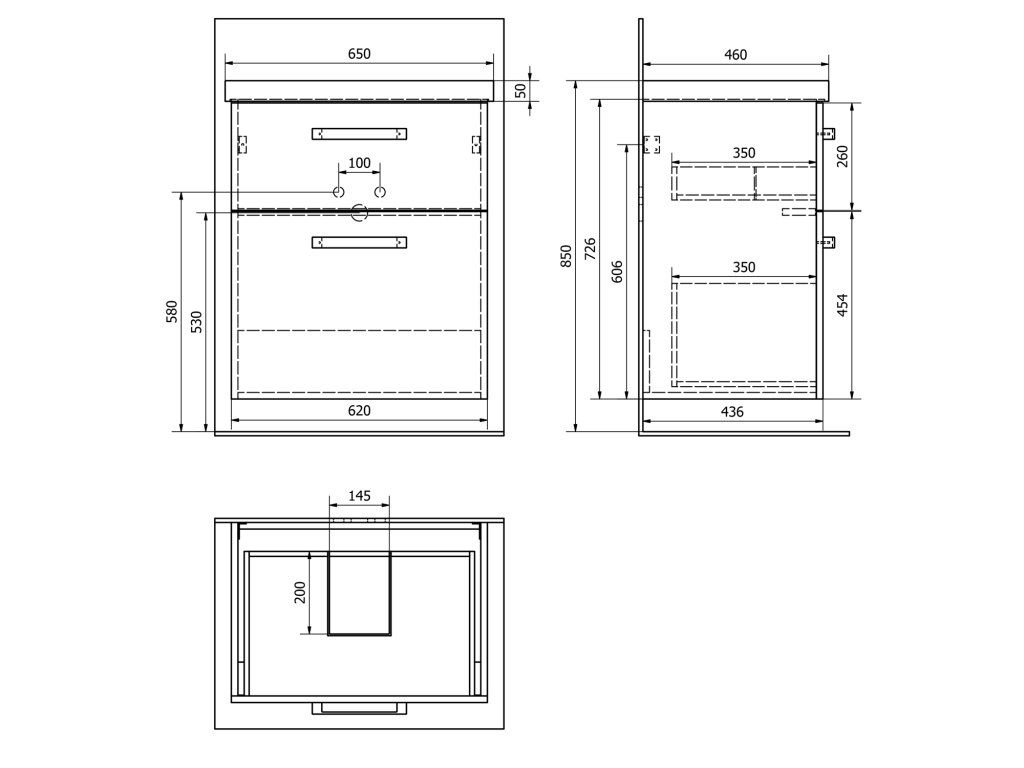 Aqualine VEGA umývadlová skrinka 62x72,6x43,6cm, 2x zásuvka, biela VG063