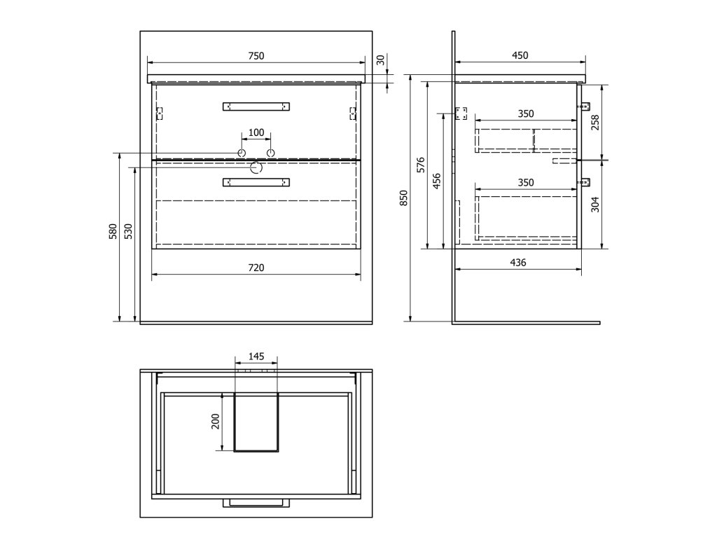 Aqualine VEGA umývadlová skrinka 72x57,6x43,6cm, 2x zásuvka, biela VG073