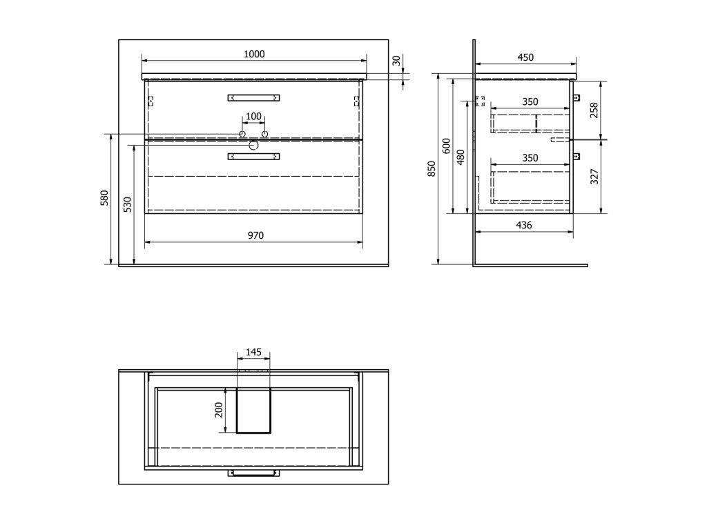 Aqualine VEGA umývadlová skrinka 97x60x43,8cm, 2x zásuvka, dub platin VG903