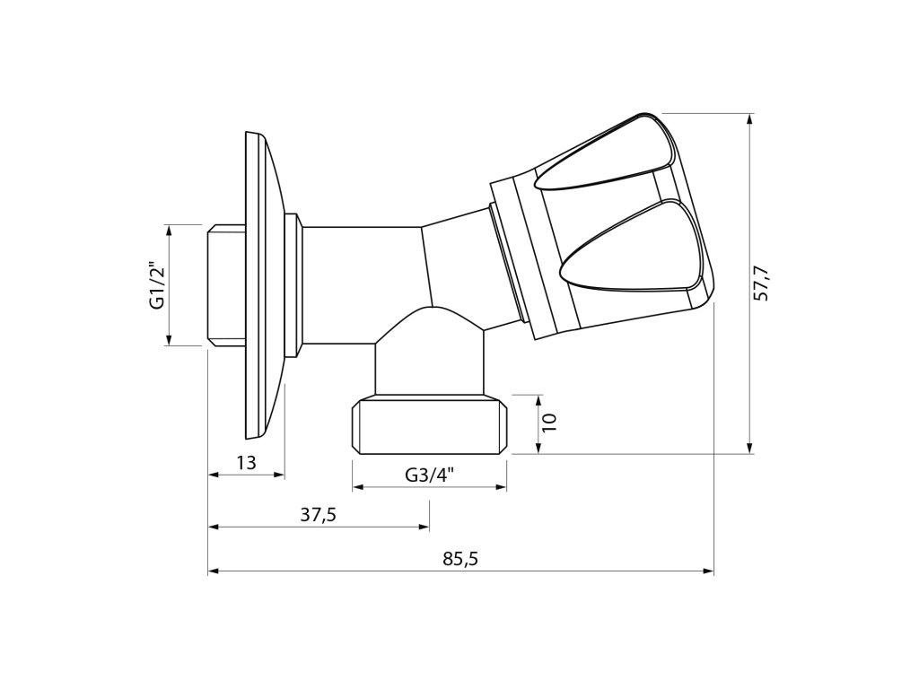 Aqualine Ventil pre práčku so spätným ventilom, 1/2„x3/4“, chróm 5313