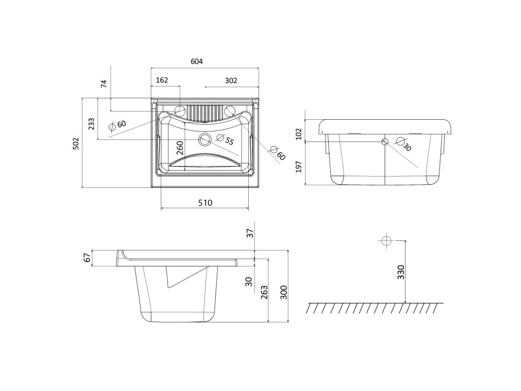 Aqualine Závesná výlevka 60x50cm, plast, biela PI6050