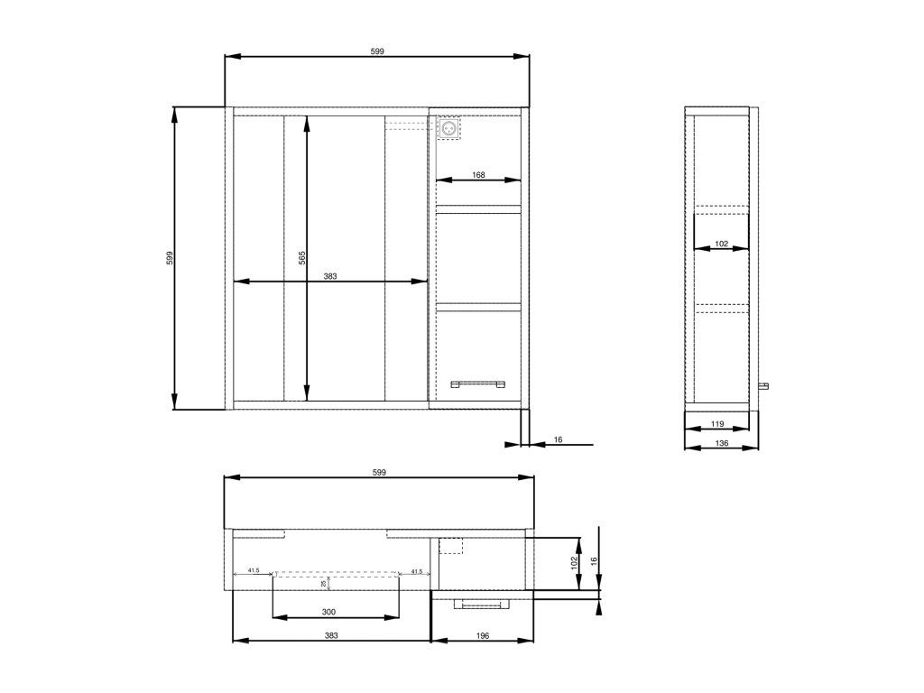 Aqualine ZOJA/KERAMIA FRESH STRIP galérka s LED osvetlením, 60x60x14cm, pravá, dub platin 45028S