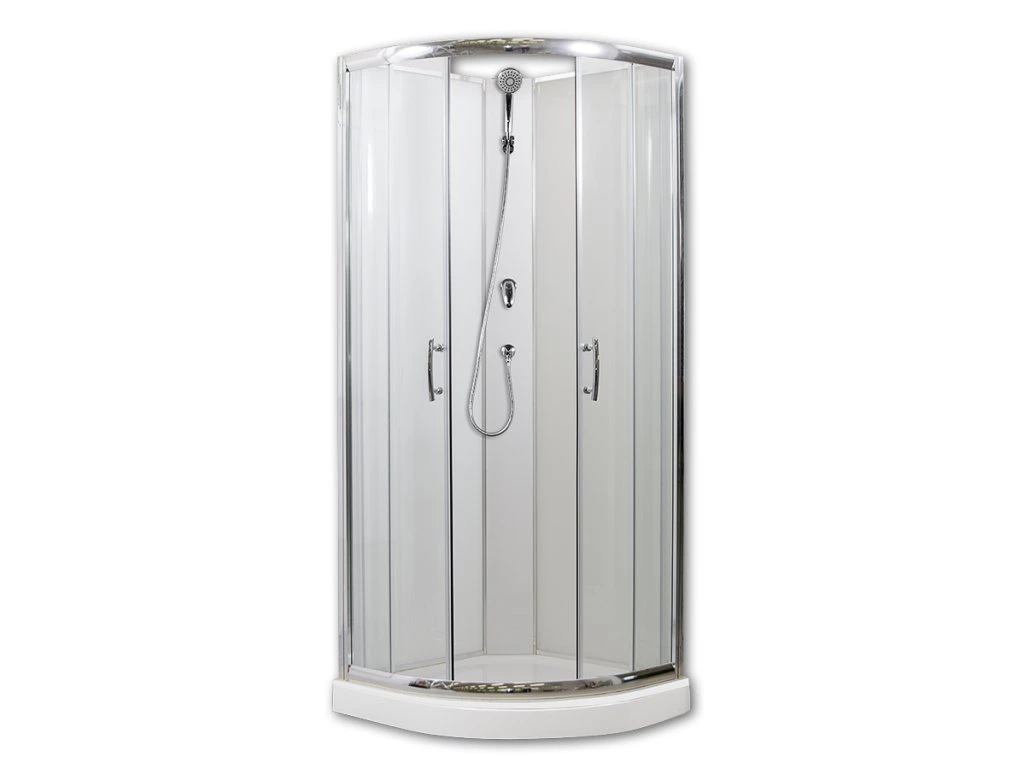 Sprchový box ARTTEC BRILIANT 80 MODEL 1 chinchila, vlastná výroba, s posuvnými štvrťkruhovými dverami sa vyznačuje vysokou kvalitou a jednoduchým dizajnom. Ponúka všetko, čo potrebujete na pohodlné každodenné sprchovanie: batériu, ručnú sprchu s držiakom a vaňu z liateho mramoru.