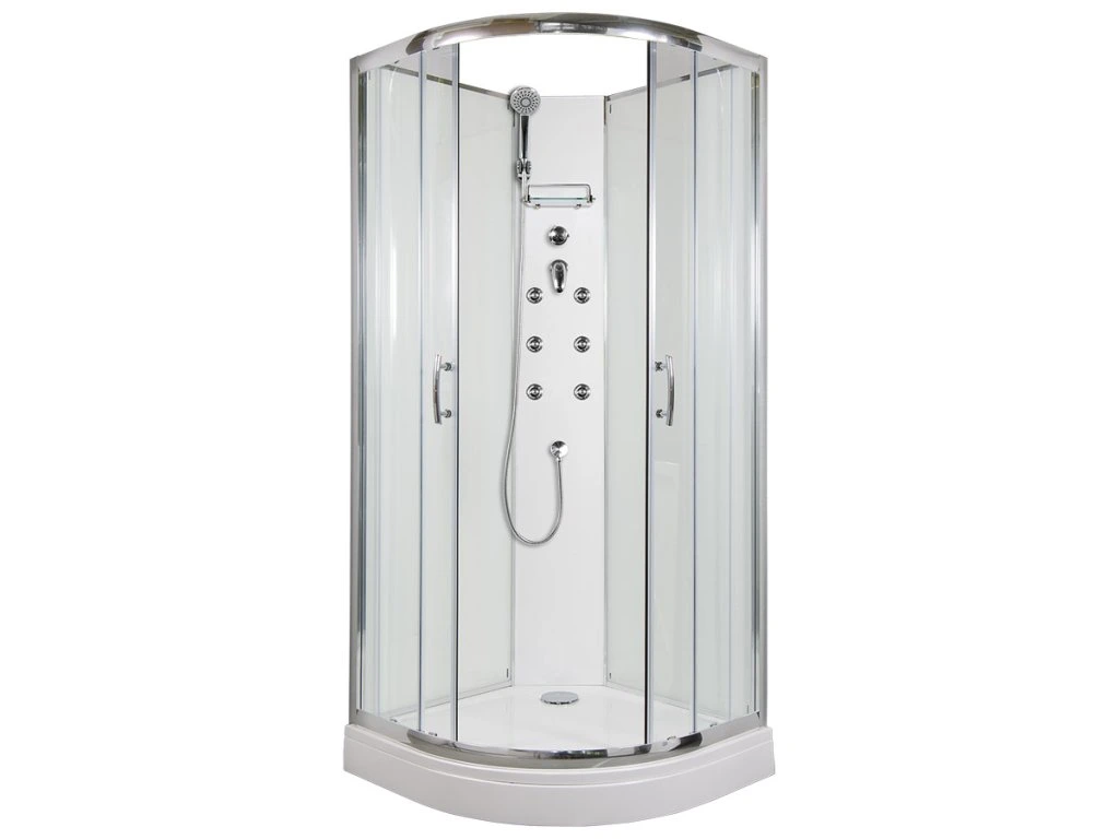 Masážny sprchový box ARTTEC BRILIANT MODEL 4 hrozno, vlastná výroba, s posuvnými dverami, štvrťkruhový, sa vyznačuje vysokou kvalitou a jednoduchým dizajnom. Ponúka všetko, čo potrebujete na pohodlné každodenné sprchovanie: batériu s ručnou sprchou a držiakom, poličku a vaničku z liateho mramoru. Je vybavená aj 6 masážnymi tryskami na dodatočnú relaxáciu.