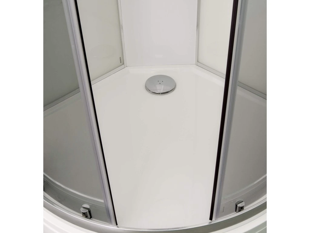 ARTTEC BRILIANT MODEL 5 sivý masážny sprchový box, vlastná výroba, s posuvnými dverami, štvrťkruhový, sa vyznačuje vysokou kvalitou a jednoduchým dizajnom. Ponúka všetko, čo potrebujete na pohodlné každodenné sprchovanie: batériu s ručnou sprchou a držiakom, poličku, zabudované sedadlo, stropnú sprchu a vaničku z liateho mramoru. Je vybavená aj 6 masážnymi tryskami na dodatočnú relaxáciu.