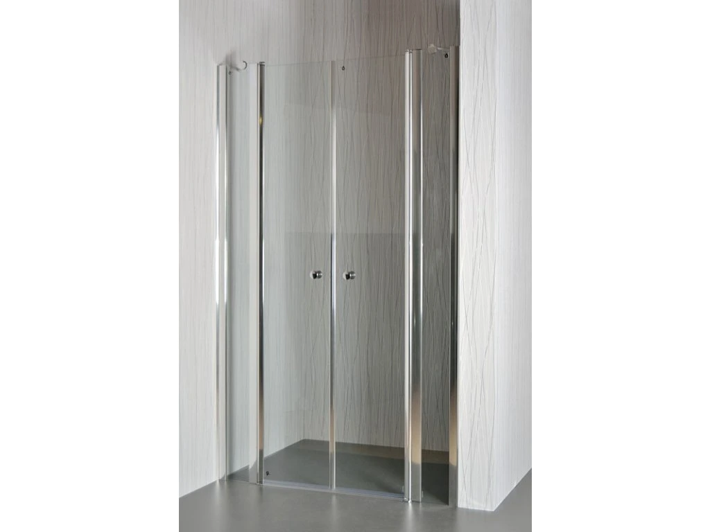 Dvojdielne sprchové dvere do výklenku Saloon sú vybavené bezpečnostným sklom. Toto sklo je vsadené do lešteného ALU rámu. Dvere sa dajú otvárať do priestoru aj do sprchového kúta. Výhodou je určite nastaviteľná šírka päť centimetrov pre nepresne postavený výklenok.