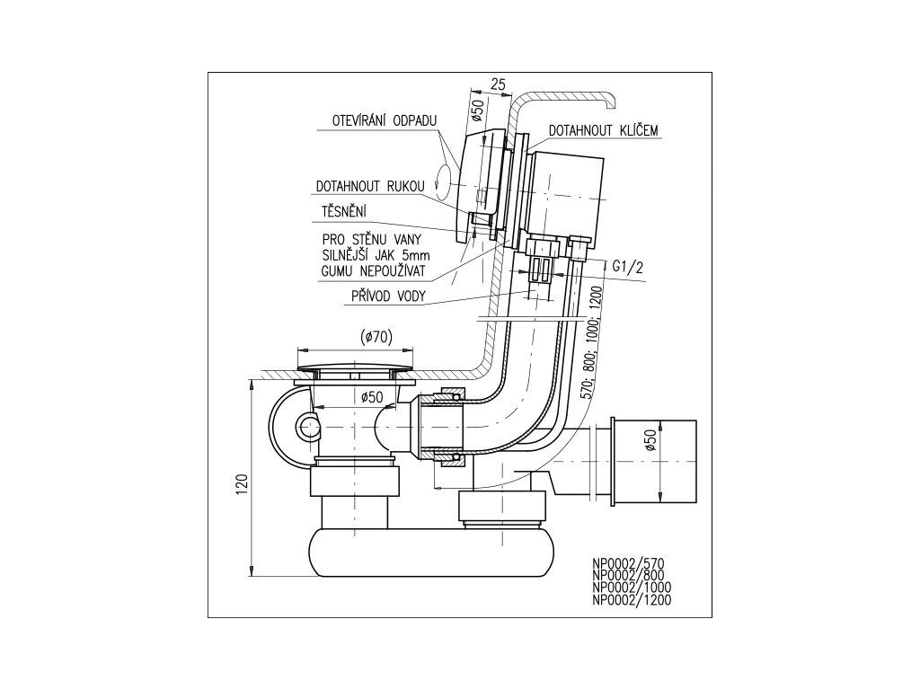 Unikátny dizajn s najnižšou hlavou na ovládanie odpadovej zátky (nezmenšuje priestor vane)