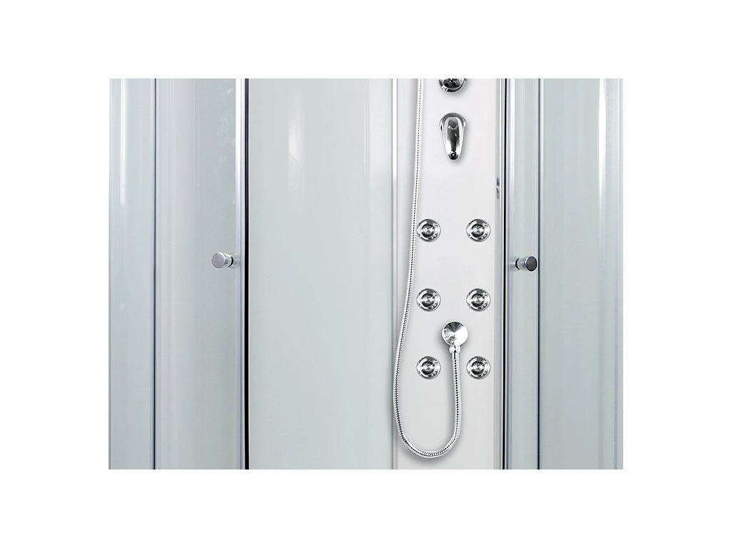 Na zadnom laminátovom paneli sa nachádza ručná sprchová batéria a 6 masážnych trysiek.