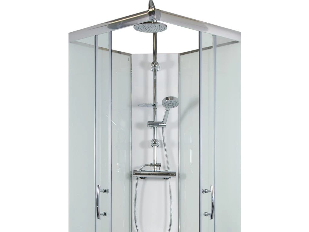 - Rozmery: 87x87x233 cm (výška je vrátane hornej sprchy, na želanie zákazníka je možné výšku hornej sprchy vyhotoviť v rozmedzí 220-250 cm).