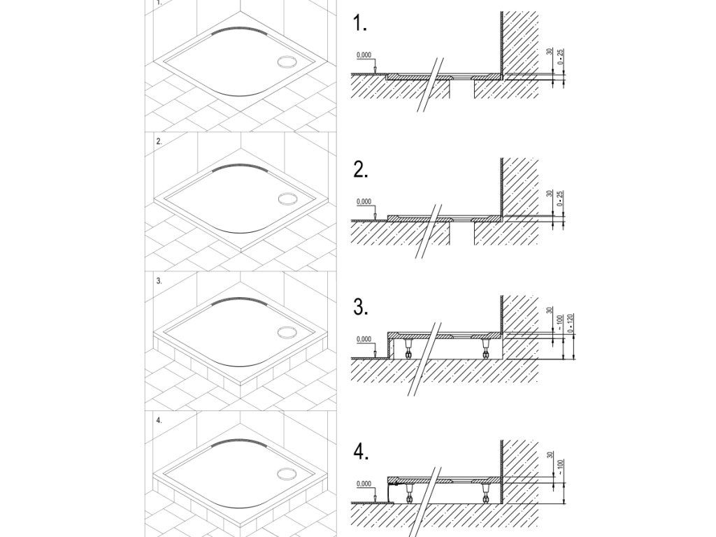 Ďalšou možnosťou je usadenie vane na podlahu, na ktoré nepotrebujete žiadne špeciálne vybavenie; vaňa je primárne určená na túto možnosť. - Vyvýšená s podstavcom