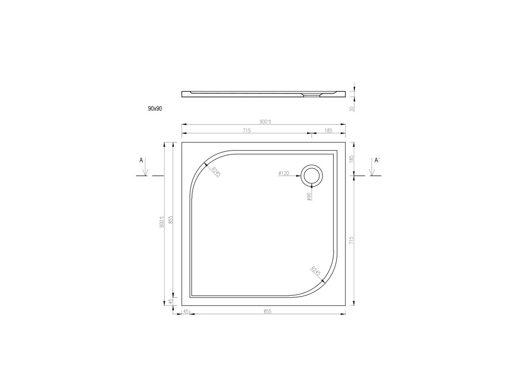 - sprchová vanička STONE z liateho mramoru 90 x 90 x 3 cm