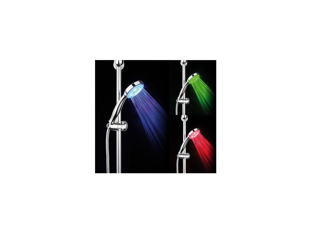 Okrúhla LED sprchová hlavica je jednofunkčná a vďaka LED diódam vytvára pri sprchovaní pôsobivé svetelné efekty. Farby modrá, zelená a červená sa striedajú podľa teploty vody.