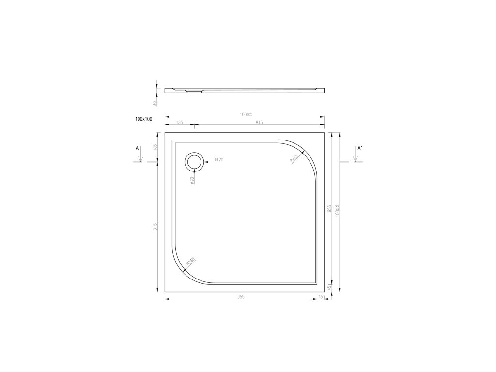 - sprchová vanička STONE z liateho mramoru 100 x 100 x 3 cm