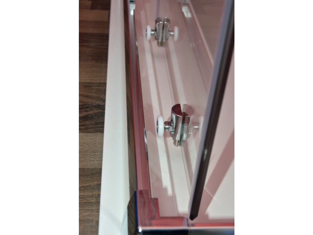 Sprchový kút SMARAGD 80 s čírym sklom má dvojité horné kolieska pre tichý a plynulý chod.