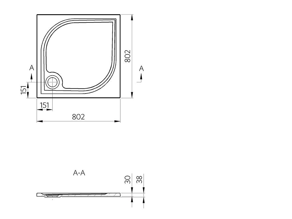 - Sprchová vanička LINEA z liateho mramoru 80 x 80 x 3 cm