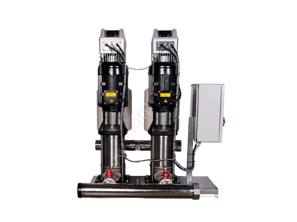 - 2 paralelne zapojené vertikálne odstredivé čerpadlá z nehrdzavejúcej ocele namontované na spoločnom základnom ráme