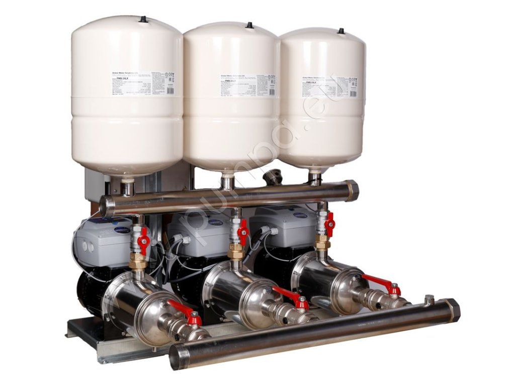 - automatická tlaková stanica obsahuje 3 horizontálne odstredivé čerpadlá z nehrdzavejúcej ocele zapojené paralelne