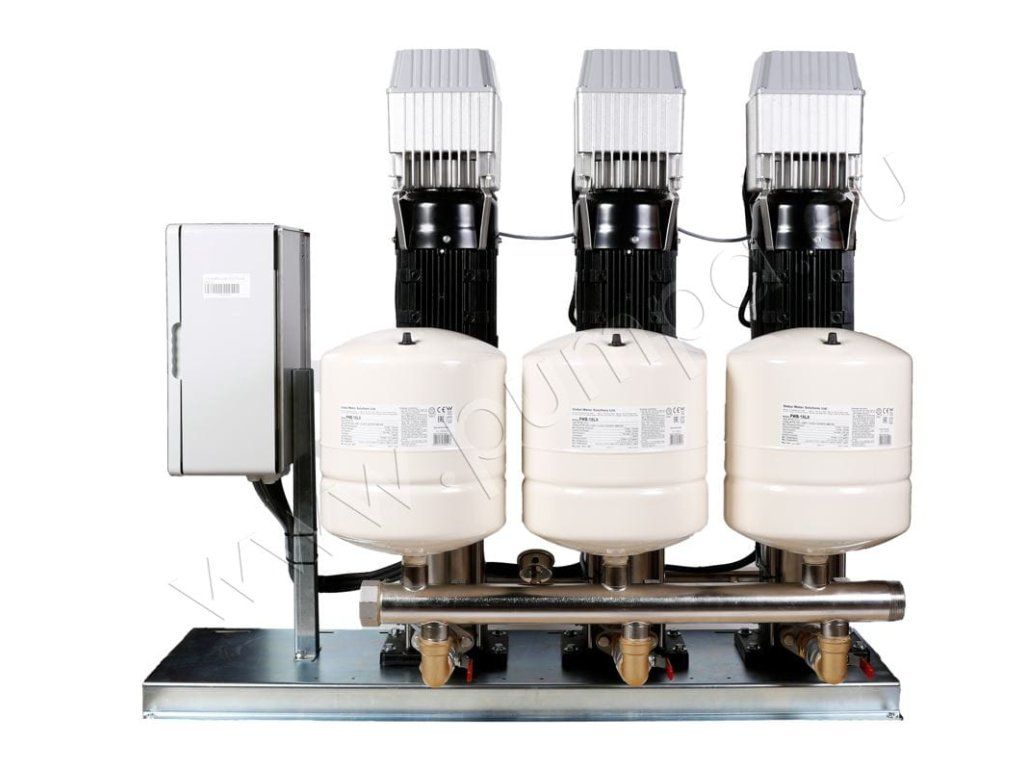 - 3 paralelne zapojené vertikálne odstredivé čerpadlá z nehrdzavejúcej ocele namontované na spoločnom základnom ráme