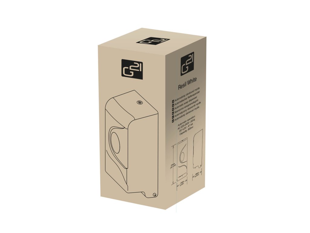 Automatický dávkovač G21 Resil na vás myslí v každej oblasti. Nielenže krásne vyzerá, takže sa hodí prakticky kamkoľvek. Je tiež dokonale funkčný, spoľahlivý a bezpečný. Dávkuje mydlo v presných množstvách, takže nedochádza ani k plytvaniu. Spĺňa všetky vaše želania: praktickosť, krásu, čistotu a predovšetkým pohodlie.