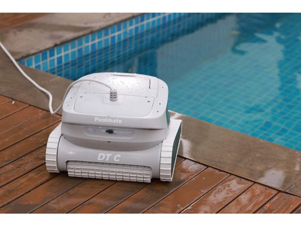 Automatický bazénový odsávač Poolmate DT C je ideálny pre bazény s rozlohou do 100 m². Vďaka 12 m káblu a filtračnému košu s objemom 4,1 l účinne čistí dno, steny a vodnú hladinu. Vďaka patentovanému bočnému pohybu a dvom čerpadlám dosahuje výkonné odsávanie až 420 l/min. Ponúka tri režimy čistenia a jednoduché ovládanie prostredníctvom aplikácie alebo manuálneho tlačidla.