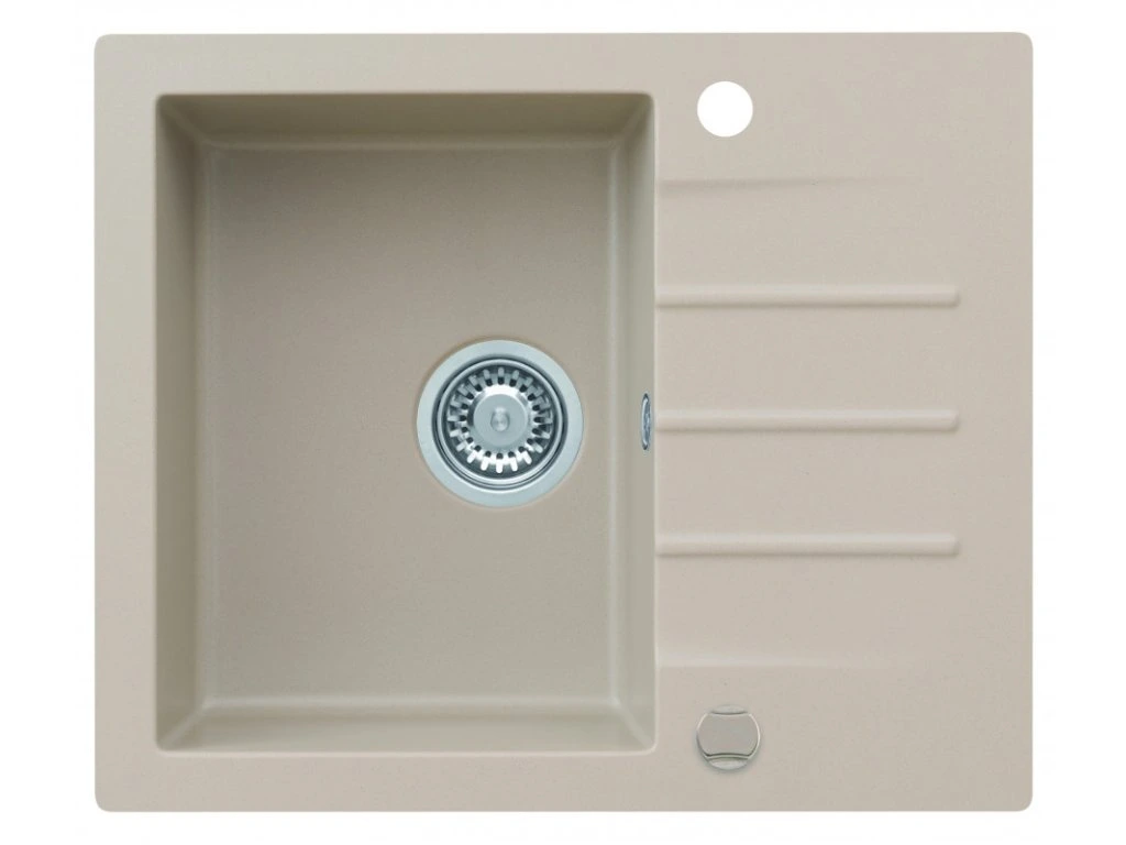 Hoci má celý drez menšie rozmery, pri umývaní riadu vás to nebude obmedzovať, vanička je priestranná ako pri väčších modeloch, len odkladacia plocha je menšia. 16 cm hlboký drezový priestor je dostatočný na pohodlné umývanie riadu. Praktický odtok využijete na odkladanie riadu, zeleniny alebo rozmrazovanie potravín.