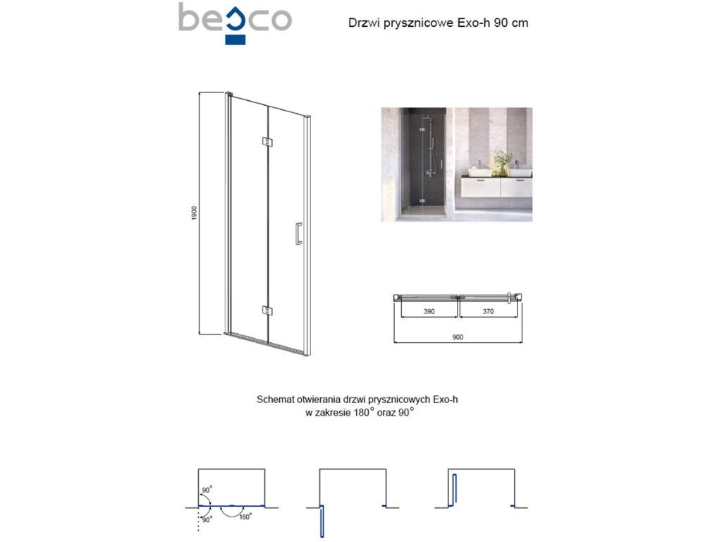 BESCO Bezrámové sprchové dvere EXO-H Farba rámu - Chróm/Leštený hliník (ALU), Pevná stena - Bez pevnej steny, Rozmer A - 90 cm, Rozmer C - 190 cm, Smer zatvárania - Univerzálna Ľavé / Pravé, Výplň - Číre bezpečnostné sklo - 6 mm BCEXOH90CC
