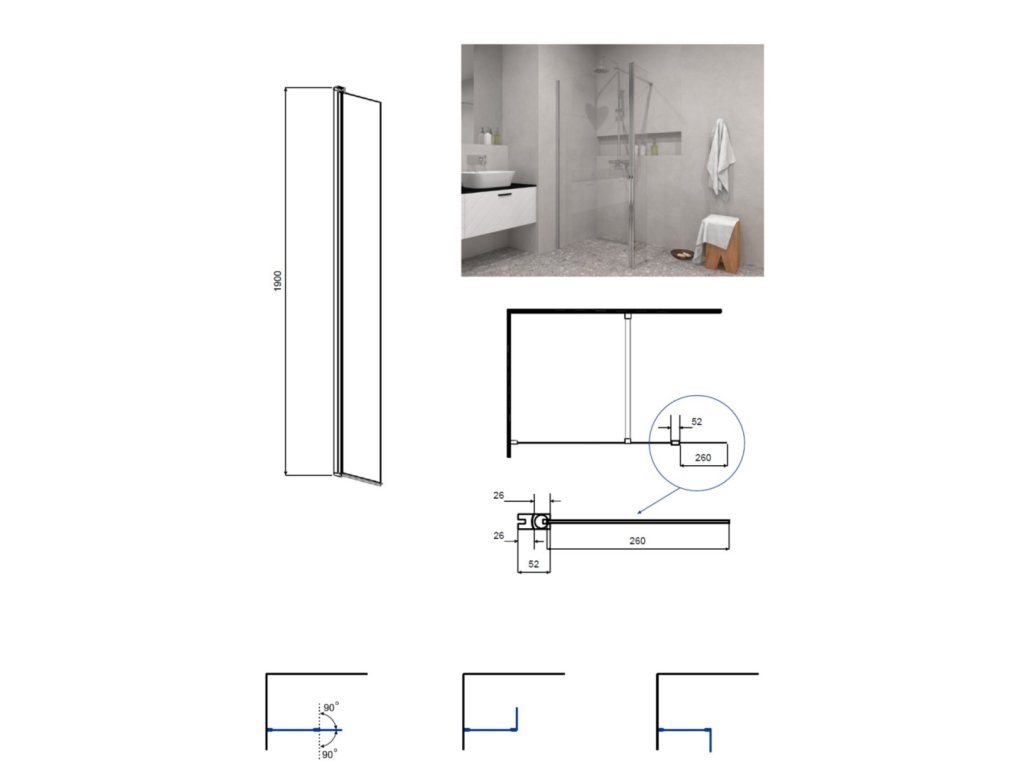 Pri montáži Walk-in ECO-N BLACK vrátane tohto bočného otočného panelu ECO-N BLACK je inštalácia možná iba priamo na podlahu , nemožno nainštalovať na vaničku z dôvodu väčšieho montážneho rozmeru.