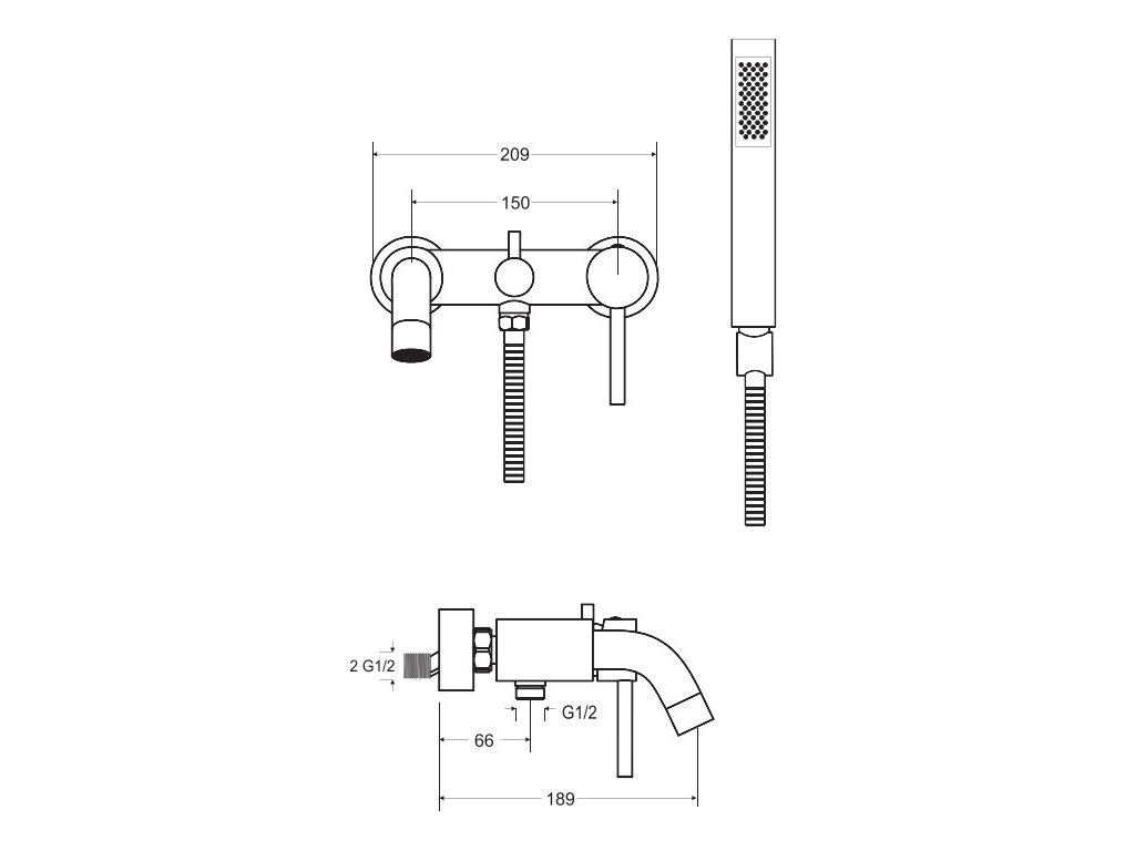• dizajn - nástenná vaňová batéria so sprchou
