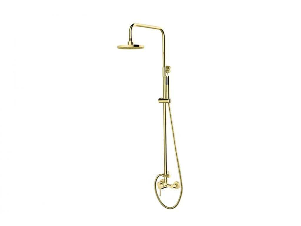 Jedinečný nástenný sprchový set s príslušenstvom DECCO/ILLUSION v zlatej farbe s elegantnými zaoblenými tvarmi.