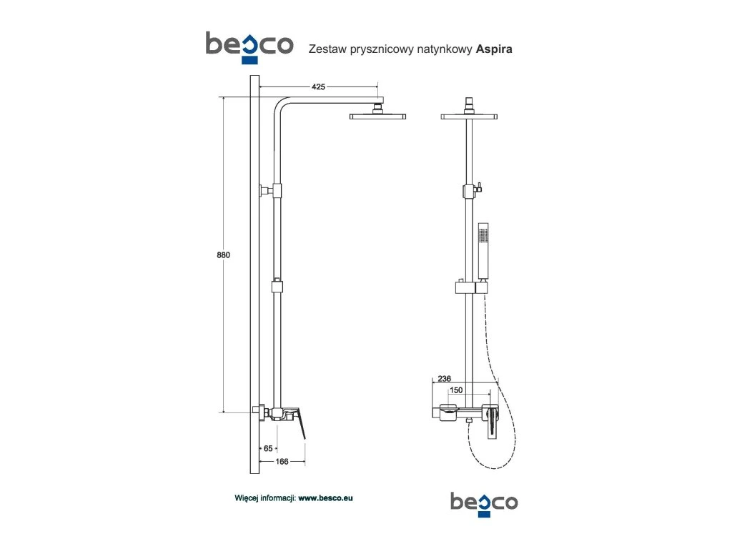 BESCO Nástenný sprchový/vaňový set ASPIRA grafitová BABPANGR