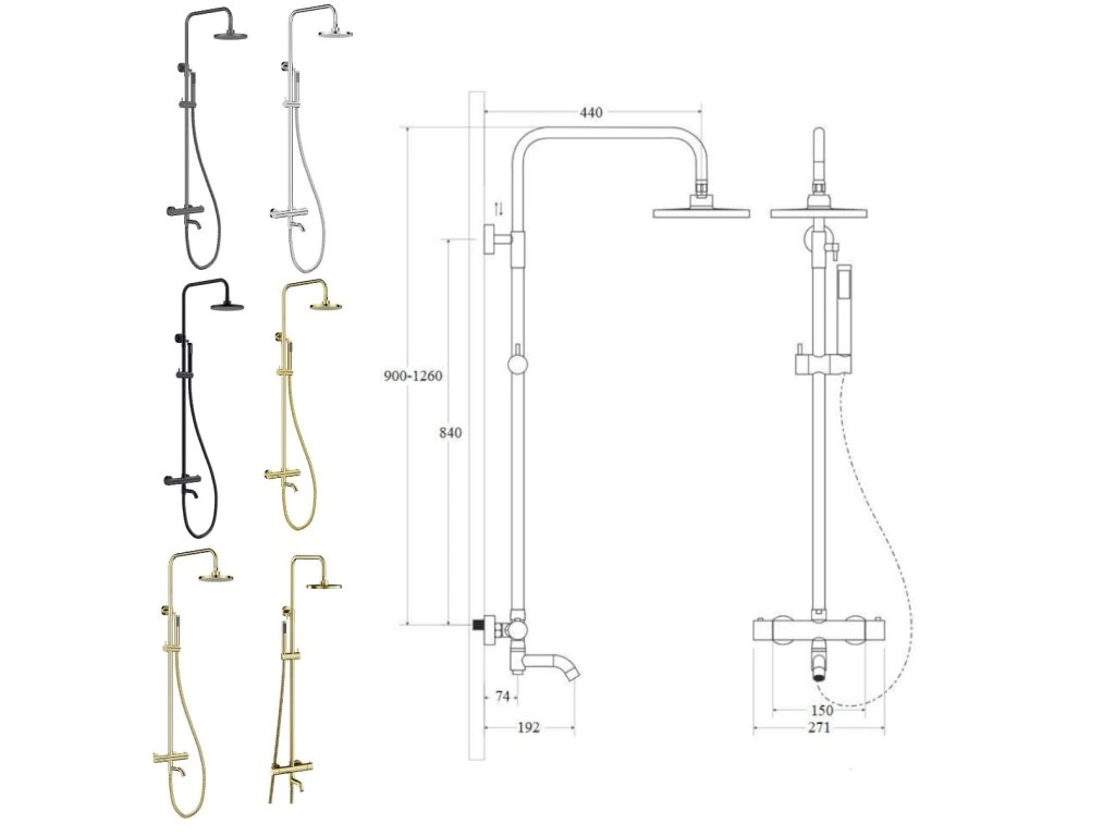 - Regulovateľná výška hlavovej sprchy 1060-1440 mm