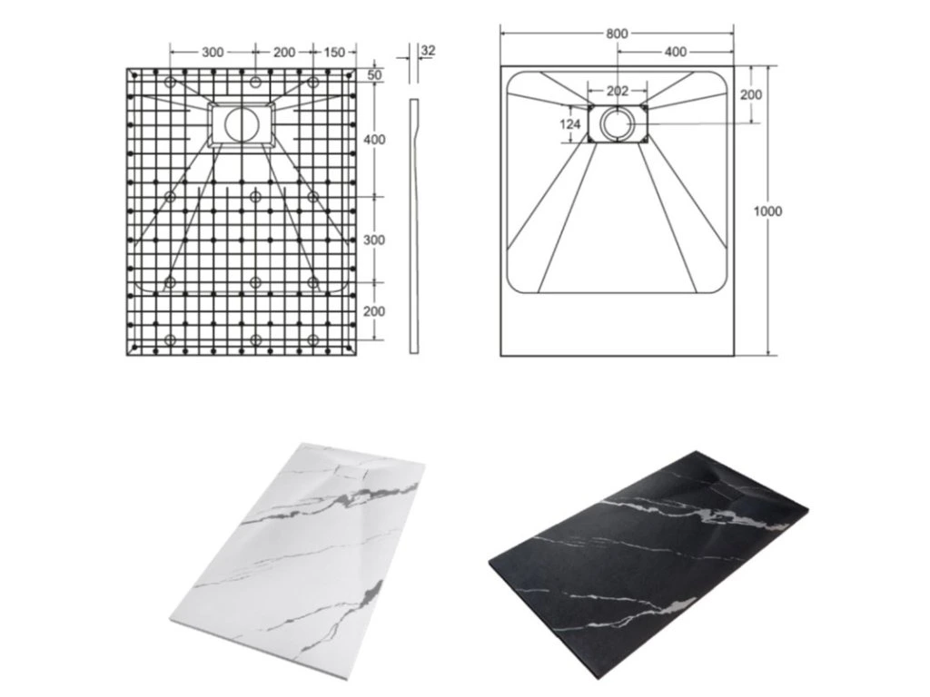 Elegantná ultratenká sprchová vanička VEXO MARBLE ČIERNA je vyrobená zo špeciálneho SMC materiálu. Dodáva sa vrátane sifónu, ale bez nožičiek. Krytka sifónu je súčasťou balenia.